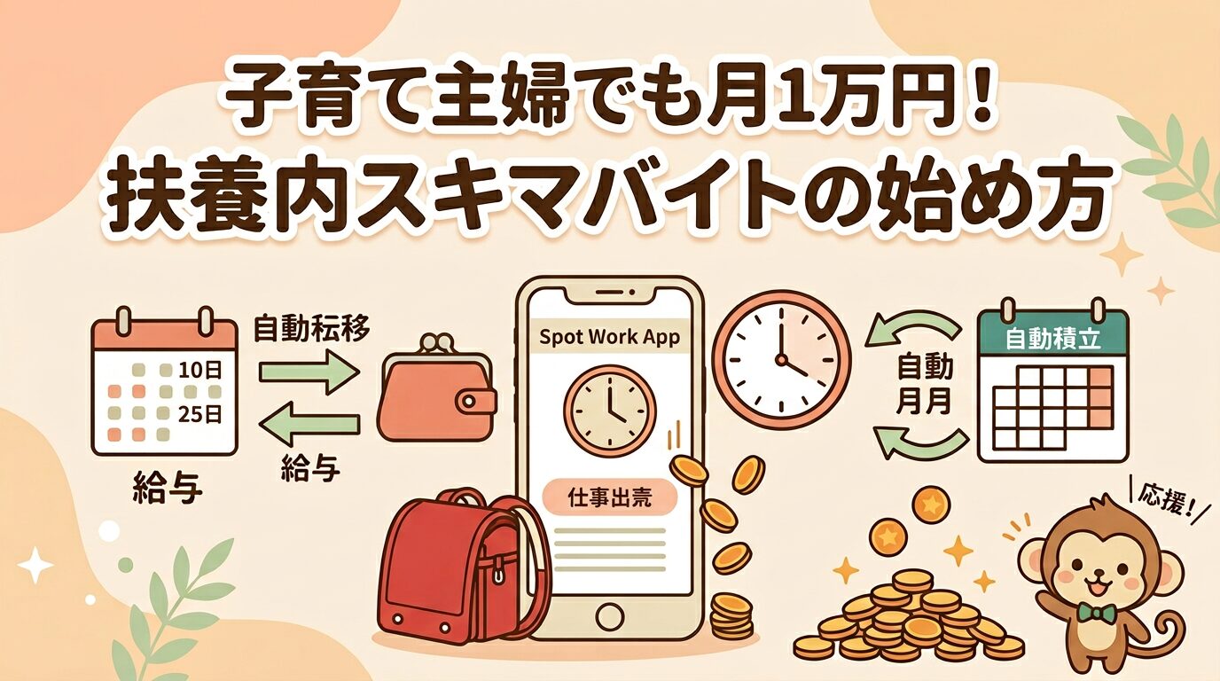 生活スタイルを変えなくていい。扶養を外れなくていい。子育ての合間の時間を使って、月1万円を手元に増やす——それがスキマバイトの可能性です。